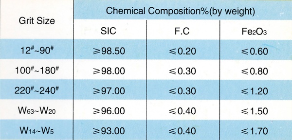 黑色碳化硅 黑色碳化硅易碎、堅韌,具有良好的電熱傳導(dǎo)性。其硬度為3100-3280kg/mm2。由其制造的砂輪適合于磨制金屬和低抗張強度的非金屬材料,諸如灰鑄鐵、黃銅、鋁、石材、皮革和橡膠等。 另外,黑色碳化硅可用于生產(chǎn)耐火產(chǎn)品及電子產(chǎn)品等。